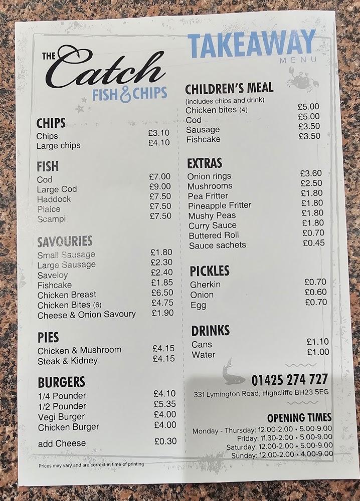 Located on the bustling Lymington Road, The Catch Fish & Chips is a cornerstone of the community in Highcliffe, Christchurch. This region is celebrated for its beautiful coastline and vibrant village atmosphere, often drawing families and tourists alike. Just a stone's throw from the beach, The Catch makes for the perfect stop after a relaxing day by the sea. The restaurant embraces a casual vibe, ideal for both solo diners and larger groups seeking a laid-back meal.